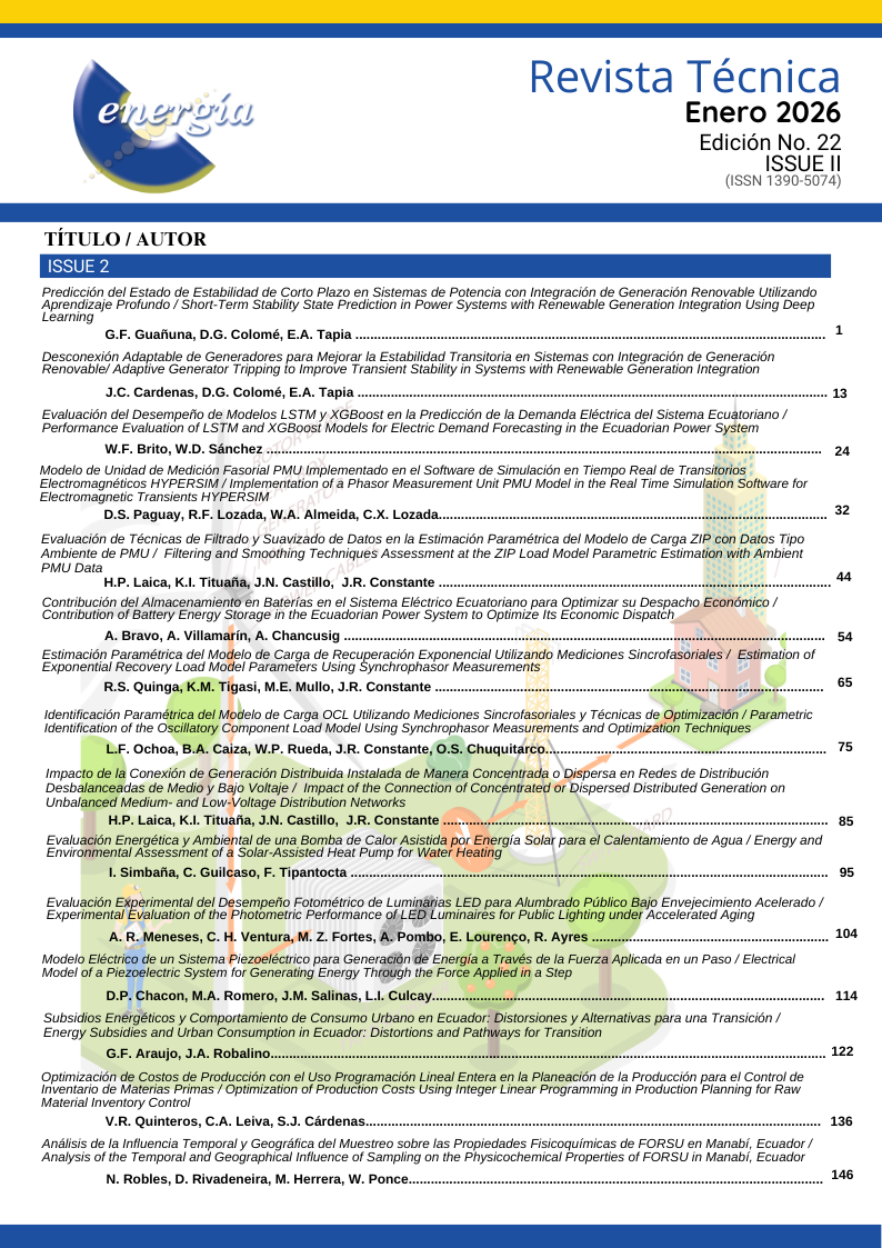 Evaluación Energética y Ambiental de una Bomba de Calor Asistida por Energía Solar para el Calentamiento de Agua https://doi.org/10.37116/revistaenergia.v22.n2.2026.725 Isaac Simbaña, Cristian Guilcaso, Fabricio Tipantocta Visitas del artículo 16 | Visitas PDF 4 PDF FLIP HTML XML EPUB